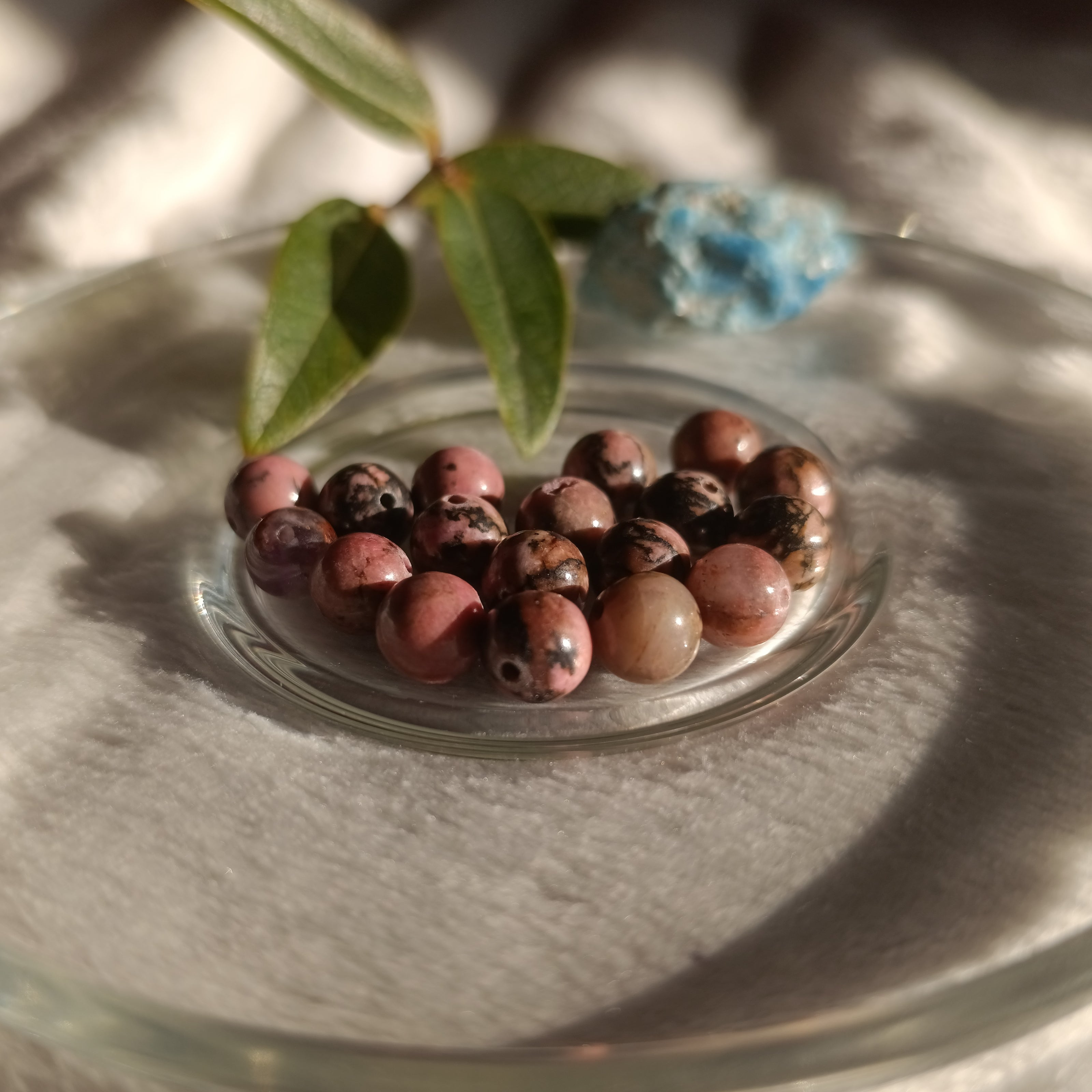 La rhodonite aide à apaiser blessures et tensions, soutient le deuil et la guérison émotionnelle, clarifie l’esprit et ouvre le cœur à la compassion, à l’amour et au renouveau.